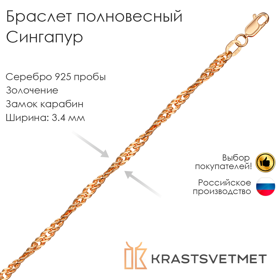 Выберите серебряный браслет с позолотой от Красцветмет и добавьте нотку роскоши в свой образ уже сегодня!