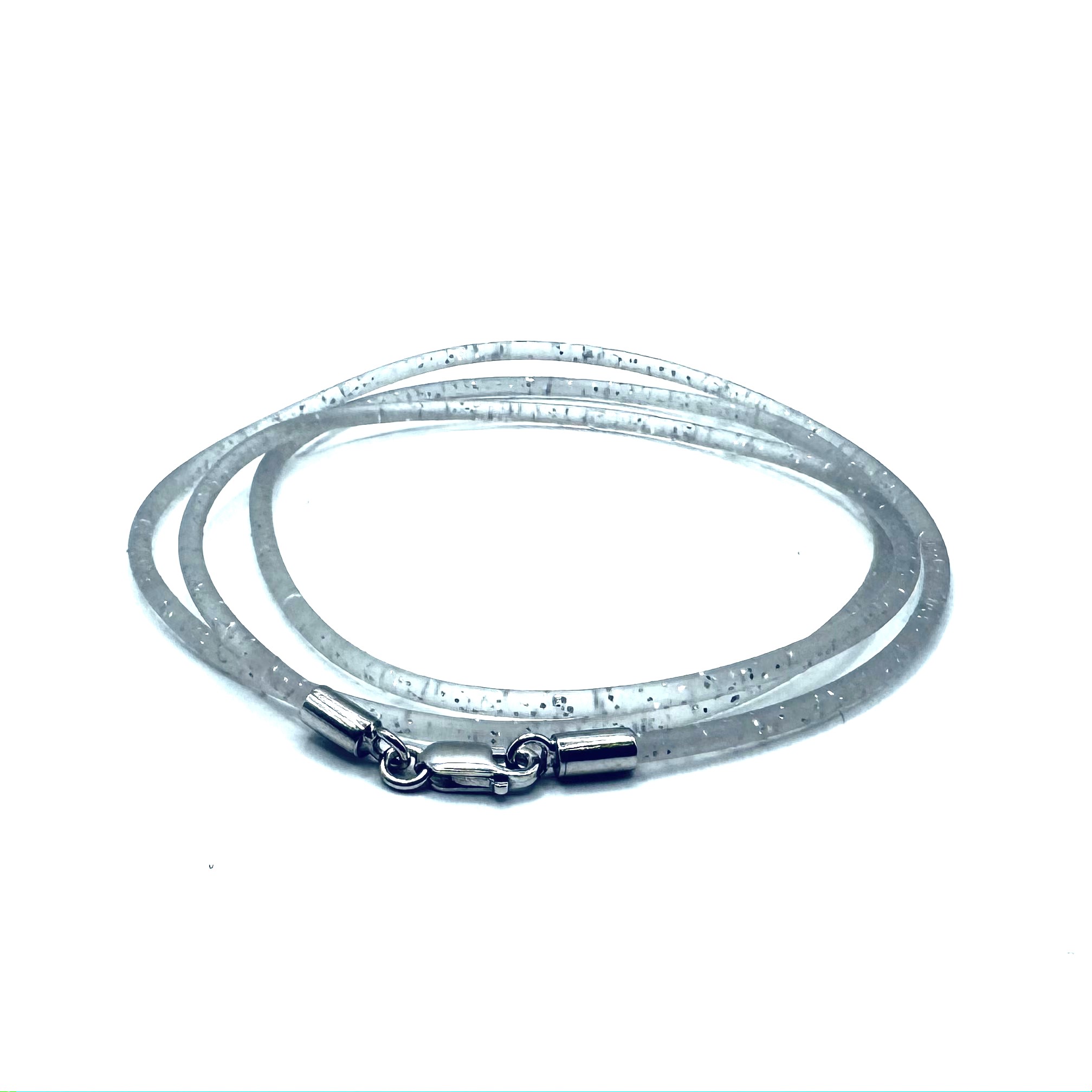 Шнурок, гайтан мужской и женский из силикона с серебряным замком 925 пробы