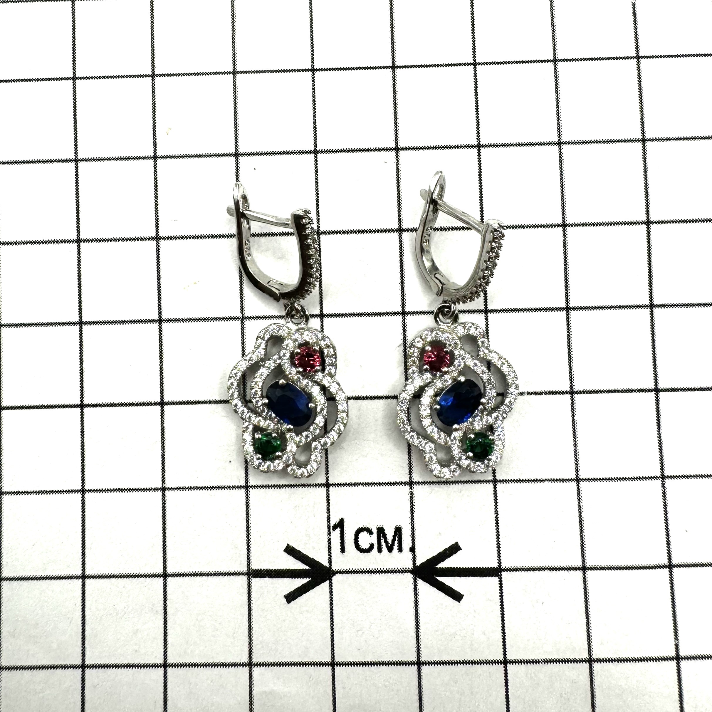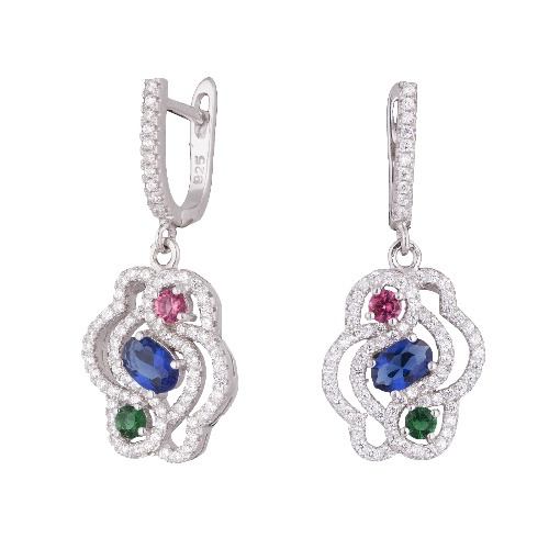 Серьги из серебра с цветными фианитами