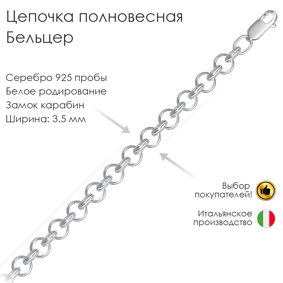 Итальянская цепочка изготовлена из серебра 925 пробы, что гарантирует ее высочайшее качество и долговечность. Родиевое покрытие придает изделию невероятный блеск и устойчивость к царапинам и потускнению.