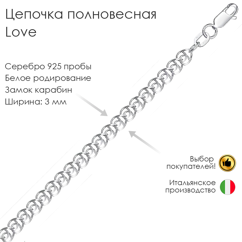 Итальянская цепочка изготовлена из серебра 925 пробы, что гарантирует ее высочайшее качество и долговечность. Родиевое покрытие придает изделию невероятный блеск и устойчивость к царапинам и потускнению.