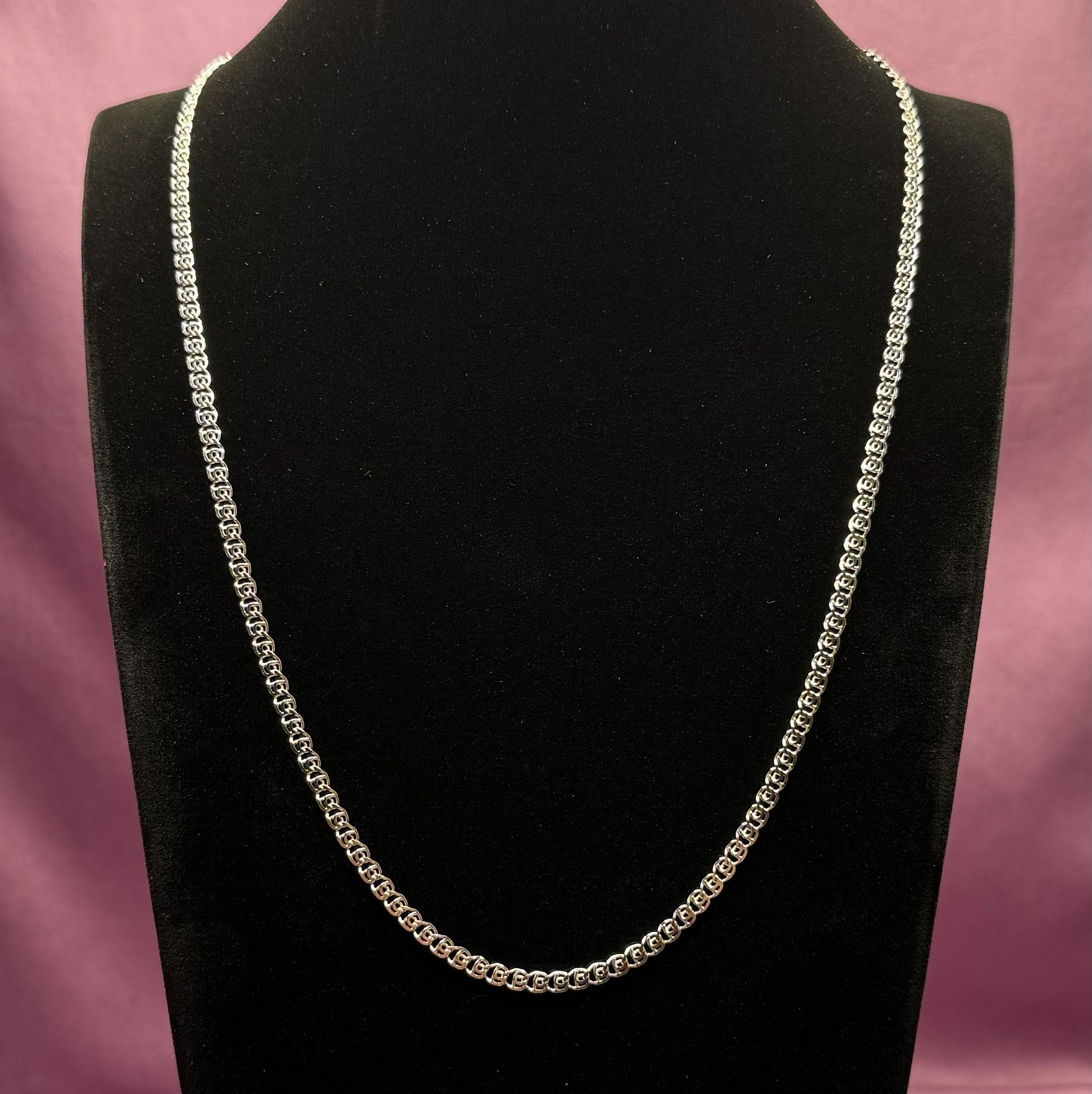 Изысканный дизайн и благородный блеск родия делают цепочку идеальным аксессуаром.