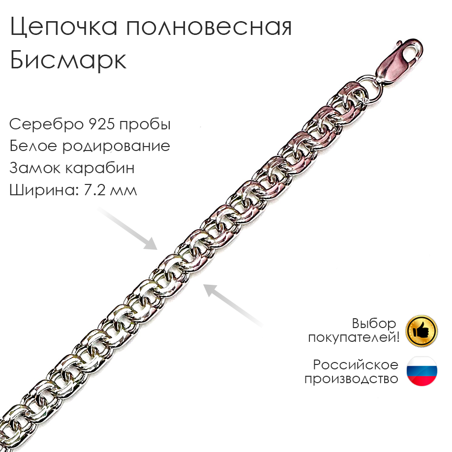 Серебряная цепочка с родиевым покрытием ручного плетения БИСМАРК – универсальное дополнение к любому образу. Обратите внимание на эту красивую и прочную серебряную цепочку с родиевым покрытием российского производства.